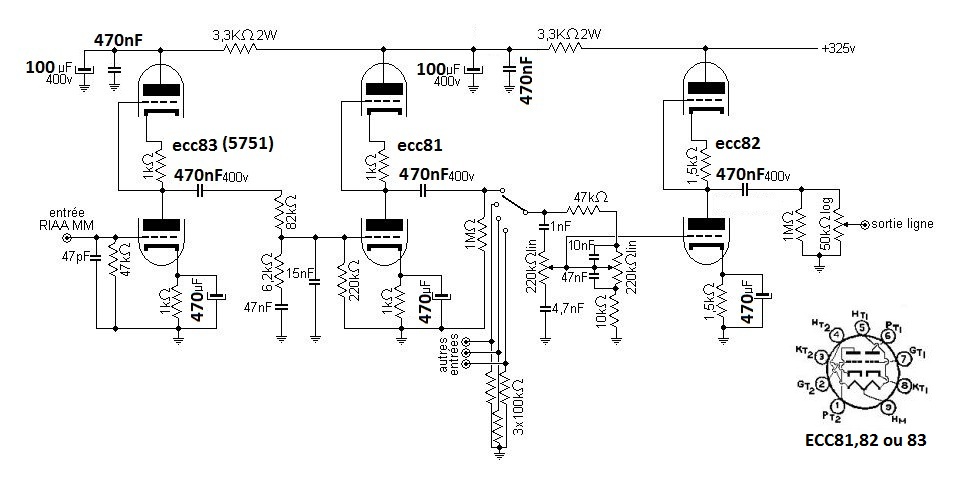 Après avoir monté et écouté pas mal de circuits copiés sur les schémas des grandes marques de la Hi-Fi, voici le seul préampli à lampes que j’apprécie, je l’ai découvert dans les pages de la regrettée revue de l’audiophile (N°2 de décembre 1977 et N°7 de novembre 1978).