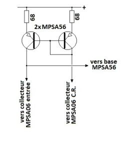 Pour ceux qui ne veulent pas de réglage de l’offset, la modif suivante avec un miroir de courant peut être apportée: